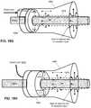 FIGS. 22A and 22B are block diagrams illustrating example, non-limiting embodiments of a waveguide device for launching hybrid waves in accordance with various aspects described herein.