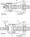 FIGS. 22A and 22B are block diagrams illustrating example, non-limiting embodiments of a waveguide device for launching hybrid waves in accordance with various aspects described herein.