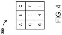 WhileFIG. 4 depicts thearray200 having a three-by-three cell structure, it will be appreciated that this is for illustration purposes only and is not intended to limit the scope of the invention, as other array cell structures, such as a four-by-four or a four-by-three cell structure, for example, may be suitable for a purpose disclosed herein. Any array row-by-column cell structure suitable for a purpose disclosed herein is contemplated and considered to be within the scope of the invention.