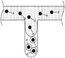 FIG. 28A is a cross section drawing of asmall blood vessel2820 branching off alarger vessel2810. Thesmall vessel2820 may be tortuous as shown, but does not hinder the walking travel of magnetic rod collection and the rolling motion of a magnetically-enabled ball. Both technologies are depicted as starting at the right side of thesmall vessel2820 and approaching ablockage2815. At subsequent points in time, the location of the magnetic ball ormagnet rod collection2825 is identified at the points indicated by2826,2827,2828, and2829. The translation direction of the particle collection ormagnetic ball2825 is indicated by thearrow2830 extending from the body.