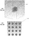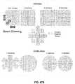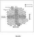 FIG. 47E illustrates the structural differences between a 4×4 linear grid versus a 4×4 hexagonal grid.FIG. 47E further illustrates how a large hexagonal array of dielectric polyrod antennas can be constructed by combining 4×4 hexagonal grids.FIG. 47F illustrates that a 1×7 hexagonal grid can be used to generate near-field beam patterns that can be rotated by 30 degrees by selectively choosing adjacent cells in a horizontal plane.FIG. 47F further shows how 1×7 hexagonal grids can be combined (e.g., a 20 element array), and how with such combinations, various shapes of near-field beam patterns can be generated by selectively activating particular cells of a hexagonal dielectric polyrod array.FIG. 47G further illustrates how a large hexagonal dielectric polyrod array can be used to generate different near-field beam pattern configurations by selective activation and synchronization of cells in the hexagonal dielectric polyrod array, while other cells are inactive for transmission purposes, but may be active for reception of wireless signals.
