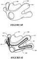 FIGS. 48 to 62 illustrate nasal seal embodiments which have stabilising flaps to transfer the load of the sealing surface on to the cheeks instead of the lip and bridge of the nose,