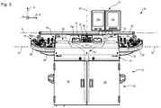 Operating console26 furthermore comprises adisplay apparatus76 embodied separately from operatingpanels54 and66 and also separately fromadditional operating panel74.Display apparatus76, which comprises twodisplay surfaces76aand76b, is displaceable on aguidance rail78 along a displacement axis V parallel to pitch axis Ni.Display apparatus76 can thus be conveyed along pitch axis Ni to an operating site offirst operating panel54, to an operating site ofadditional operating panel74, or to an operating site ofsecond operating panel66, and can display information to the particular machine operator who is working there. Display surfaces76aand76bcan also be embodied in contact-sensitive fashion as touchscreens for the input of data.