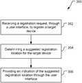 An example of a non-transitory storage medium stores processor-readable instructions configured to cause a processor to: receive a registration request through a user interface, the registration request being for a target device; determine a suggested registration location for the target device; and cause the user interface to provide an indication of the suggested registration location.