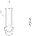 The taperedportion144 can also facilitate proper location of theshunt130 into the supraciliary or suprachoroidal spaces. For example, theshunt130 is preferably advanced through the tissue within the anterior chamber angle during implantation. This tissue typically is fibrous or porous, which is relatively easy to pierce or cut with a surgical device, such as the tip of theshunt130. Theshunt130 can be advanced through this tissue and abut against the sclera once the shunt extends into the uveoscleral outflow pathway. As theshunt130 abuts against the sclera, the taperedportion144 preferably provides a generally rounded edge or surface that facilitates sliding of theshunt130 within the suprachoroidal space along the interior wall of the sclera. For example, as theshunt130 is advanced into the uveoscleral outflow pathway and against the sclera, theshunt130 will likely be oriented at an angle with respect to the interior wall of the sclera. As the tip of theshunt130 engages the sclera, the tip preferably has a radius that will permit theshunt130 to slide along the sclera instead of piercing or substantially penetrating the sclera. As theshunt130 slides along the sclera, the taperedportion144 will provide an edge against which theshunt130 can abut against the sclera and reduce the likelihood that the shunt will pierce the sclera.