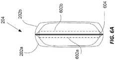 Referring next toFIG. 6A, an embodiment of apaddle module204 with an embedded connectingstructure206 will be described.FIG. 6A illustrates a sealedpaddle module204, which includes defibrillator paddles202aand202b. Eachdefibrillator paddle202aand202bmay include anoptional recess602aand602b. The defibrillator paddles202aand202bare mounted over one another such that theirrespective recesses602aand602bcooperate to form acavity604, which may be entirely hidden within and sealed inside thepaddle module204. Thecavity604 contains the connectingstructure206, which physically and electrically connects the twodefibrillator paddles202aand202b. Therefore, while thepaddle module204 remains sealed, the connectingstructure206 is unexposed and disposed directly between the twodefibrillator paddles202aand202b.