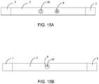 FIG. 15A This illustration shows an anterior view of an elastic belt (2). It also depicts a magnetic module (16) shown next to a vibrating module (8). The elastic belt (2) holds the magnetic module (16) and the vibrating module (8) next to the skin. The fastener ends (1) are also shown.