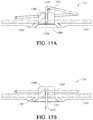 In some embodiments, the sensor device may include a skin tensioner that presses against a skin surface to create tension in the skin surface.FIGS. 13A and 13B illustrate cross-sectional side views one such embodiment, withFIG. 13A representing a tensioned configuration of thesensor device1310 prior to deployment andFIG. 13B representing a relaxed configuration after deployment. As shown, thesensor device1310 is equipped with askin tensioner1370 that allows theskin surface1330 to be placed under substantially uniform or even tension across a certain skin area covered by theskin tensioner1370. Skin tensioning prior to sensor device insertion may result in a more stable insertion with minimal lateral movement of a portion of the senor device that is to be inserted under the skin. In turn, this may further reduce discomfort to the user. In some embodiment, theskin tensioner1370 may be formed of any of variety of flexible material (e.g., silicone, polyurethane, neoprene) that possesses flexibility and allows it to conform to the contour of theskin surface1330. In other embodiments, however, the skin tensioner may be formed of a rigid material.