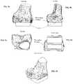 Referring now toFIG. 5, this shows views of surgical apparatus in accordance with another aspect of the present invention. As mentioned above, the two template systems ofFIGS. 1-4 can be used in total knee replacement surgery for fitting prostheses to both the femur and tibia. Those template systems comprise reusable metal cutting blocks and a plurality of patient-specific custom-made components forming the locating means. The apparatus ofFIG. 5 comprises the plurality of components of the custom-made locating means for the femoral and tibial template systems corresponding to a particular patient's knee joint, together with patient identification means, providing an indication of the particular patient to whom the knee belongs, and linking means linking the locating means to the patient identification means.