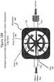 The braking, or clutching of themodulator168 ofFIG. 16C may be performed through a variety of means, to include, for example, mechanical, hydromechanical, electromechanical, electromagnetic, chemomechanical, etc.FIG. 16C illustrates one such means191 for braking theshaft192 of the vane-hub, using electromagnetic means. Theexemplary braking structure191 is further detailed inFIG. 16D, wherein thelongitudinal shaft192 of thehub180 is coupled to a hysteresis plate/disc194 positioned within amagnetic field196. When electricity is applied to themagnetic coil196, a magnetic flux is transferred to the hysteresis disk194 (as it passes through the field) causing a magnetic “drag” on thedisc194. The drag, or braking, applied to the hysteresis plate194 (and thus theshaft192 of the vane-hub) may be increased/decreased with increasing/decreasing voltage applied to the magnetic field to modulate the flow of medium as intended. When electrical current is removed, the connected disc/shaft may rotate freely about an axis ofshaft192. In the example ofFIG. 13, the maximum flow rate of agent (QAgent) is approximately 5.2 ml/second. Therefore, in producing profile of QAgentofFIG. 13, one might set the injection of medium into themodulator168 at a constant rate of 5.2 ml/second. Upon modulating,braking mechanism191 ofFIG. 16D may increase the drag (reduce the flow rate) of the agent as needed to produce the flow profile of QAgentofFIG. 13.
