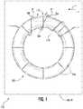 A winding114 is wrapped about at least a portion ofmagnetic core100. Winding114 carries a current i, which induces magnetic flux M (shown inFIG. 2). In certain embodiments winding114 is part of flyback transformer10. In accordance with certain embodiments winding114 can be part of a transformer rectifier unit (TRU)12, such as for an aircraft electrical system. In the illustrated exemplary embodimentmagnetic core100 has atoroid shape116.Toroid shape116 is defined by eight (8) core segments sequentially spaced apart from one another by eight (8) spacers. This is for illustration purposes only and is non-limiting. As will be appreciated by those of skill in the art in view of the present disclosure,magnetic core100 can have fewer than eight segments or more than eight segments, as suitable for an intended application. As will also be appreciated by those of skill in the art in view of the present disclosure,magnetic core100 can have another shape, such as a U-shape or an E-shape, and remain within the scope of the present disclosure.