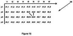 FIG. 19 is the table ofFIG. 15 representing a particular sequence matching example;
