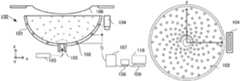 For thesupport101, it is preferable to use a member having a sufficient durability and strength to sustain the weight of the acoustic matching material, and to endure the movement of the scanning mechanism. Typically metal or resin is used. In this example, a hemispheric-shapedsupport101 is used. This is because a high sensitivity region, where the respective high sensitivity directions (directional axes) of the plurality ofacoustic probes102 concentrate, is generated, whereby the accuracy of acquiring the characteristic information distribution of the object improves. As illustrated inFIG. 1B, the plurality ofacoustic probes102 are disposed in a three-dimensional spiral form in this example, but the manner of disposing theacoustic probes102 is not limited to this. The shape of the support is not limited to a hemisphere, but may be linear, planer, bowl-shaped or the like.