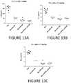 FIGS. 13A-C are graphs showing IL-6 levels (FIG. 13A), TNF-α levels (FIG. 13B) and IFN-γ levels (FIG. 13C) in mice treated with two doses of 0.2 mg/kg mmRNA encoding hEPO either lacking or containing a miR-142-3p binding site, a miR-126 binding site, or both the miR-142-3p and miR-126 binding sites, in the 3′ UTR of the construct.