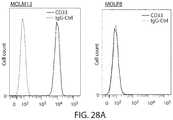 CAR33 expression from RNA electroporation was compared to stable CAR33 expression from lentiviral transduction. Donor T cells were transduced with a lentiviral construct comprising a CAR33, such as the vector ofFIG. 26, using standard methods. CAR33 expression was measured by flow cytometry analysis and quantified by mean fluorescence intensity (MFI). CAR33 expression was assessed at 8 hours, 1 day, 2 days, 3 days, and 4 days post electroporation or transduction for lentivirally-transduced CART33 cells (FIG. 34A) and for RNA-transfected CART33 cells (FIG. 34B). The grey peaks at the left side of the histograms ofFIG. 34 represents lack of CAR33 expression, while increased CAR33 expression increases towards the right side of the graphs. Lentiviral transduction results in stable expression of CAR33 in T cells, wherein the CAR33 expression level remains unchanged from 8 hours to 4 days after transduction. In contrast, RNA electroporation results in transient expression of CAR33 in T cells. Specifically, CAR33 expression is highest at 8 hours to 1 day after electroporation, and CAR33 expression decreases from 2 to 4 days after electroporation.