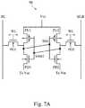 FIG. 7A illustrates a circuit schematic for a single-port SRAM cell (e.g., 1-bit SRAM cell)90. The single-port SRAM cell90 includes pull-up transistors PU1, PU2; pull-down transistors PD1, PD2; and pass-gate transistors PG1, PG2. As show in the circuit diagram, transistors PU1 and PU2 are p-type transistors, such as the p-type FinFETs discussed above, and transistors PG1, PG2, PD1, and PD2 are n-type FinFETs discussed above.