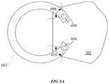 FIG. 6A shows a side view of an alternative embodiment in which acompliant member602 takes the form of a loop of flexible material, each of its two ends being pivotally coupled tohousing202 at two different positions. The pivotal coupling can be accomplished byhinges604 and606.Hinges604 and606 can be configured to provide ranges ofmotion608 and610 respectively. In some embodiments, range ofmotion608 can be the same as range ofmotion610, while in other embodiments the ranges can be either slightly or substantially different.Hinges604 and606 allowcompliant member602 to have a substantial range of motion, which can assistcompliant member602 in fitting a wide range of ear shapes and geometries. In some embodiments, end stops associated with each of hinges604 and606 can take the form of electrical contacts that communicate positional information to a controller ofearbud200. In such a configuration,earbud200 can be configured to alter its playback in accordance with information provided by the electrical contacts.