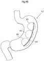 By invaginating thevolume filling device10 in part of the stomach wall, the size of the food cavity, generally designated12binFIG. 2b, will be reduced, resulting in a more rapid feeling of satiety after food intake.