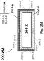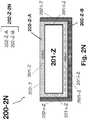 In various embodiments, a lithium decal (as shown inFIG. 2D) may be formed by interleaving one or a pair of solid release layers (e.g., a polyolefin sheet or film) into the roll during winding. As described above, in a lithium decal of the present disclosure, the solid release layer is positioned on the first and/or second major surface where it keeps the inert liquid in place, ensures that the liquid spreads evenly oversurface101i, mitigates evaporative losses because it (the solid release) enhances barrier properties, provides physical protection against contact damage, enables the use of protective liquids having relatively high vapor pressures, and serves as an interleave when stacking or rolling the layer(s) to avoid sticking. Once the decal is wound,surface101iis encapsulated by a protective liquid layer, and in some embodiments the liquid may be caused to form a sheath about the layer, which encapsulates both first and second surfaces.