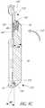 In the illustrated embodiment, the right and leftedges133,134 of theperiphery30 include a first portion orsurface143 and a second portion orsurface144 that are part of the mounting device or assembly112 (see, for example,FIG. 5D). Thefirst portion143 may be formed as a surface that extends orthogonally from aninside surface115 of thecase12 towards theback side105. Thefirst portion143 may be connected to thesecond portion144 at a point between theinner surface115 and theback side105. Thesecond portion144 may extend from theback side105 toward theinner surface115. In the illustrated embodiment (see, for example,FIG. 5D), thefirst portion143 extends at an angle θ1 relative to theback side105. The angle θ1 of thefirst portion143 may be non-orthogonal and configured such that theperiphery30 narrows from theback side105 toward theinner surface115 at the right and leftedges133,134. The non-orthogonal angle θ1 of thefirst portion143 may range from 1 to 60 degrees, including 5 to 45 degrees, and including 10 to 30 degrees, including the foregoing values and ranges bordering therein. In some embodiments, angle θ1 may be substantially 0 degrees such that the angle of thefirst portion143 is substantially orthogonal relative to theback side105. Thus, thefirst portion143 may serve as a guiding surface for a corresponding male connector of an additional device or accessory (e.g., guiding of portion orsurface145 of the accessory). The accessory may be guided along thefirst portion143 from theback side105 toward theinner surface115 in a desired direction. For example, if the accessory is placed off-center relative to theopening36, thefirst portion143 can guide the accessory to be generally centered between the right and leftedges133,134. The angle θ1 may designed to provide sufficient and desirable sliding guidance of the accessory along thefirst portion143, while also substantially inhibiting or preventing lateral movement (e.g., along the back side105) once the accessory is engaged with thefemale connector110. For example, the closer θ1 is to 0 degrees, the greater prevention of lateral movement and resistance to rotation, but less guidance alongsurface145 is provided as discussed herein. Conversely, the greater θ1 is, the greater guidance alongsurface145 is provided, but less prevention of lateral movement and resistance to rotation.