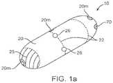 Capsule20 is sized to be swallowed and pass through the intestinal tract. The size can also be adjusted depending upon the amount of drug to be delivered as well as the patient's weight and adult vs. pediatric applications.Capsule20 includes an interior volume24 and anouter surface25 having one ormore apertures26 sized forguide tubes30. In addition to the other components ofdevice10, (e.g., the actuation mechanism etc.) the interior volume can include one or more compartments orreservoirs27. One or more portions ofcapsule20 can be fabricated from various biocompatible polymers known in the art, including various biodegradable polymers which in a preferred embodiment can comprise PLGA (polylactic-co-glycolic acid). Other suitable biodegradable materials include various enteric materials described herein as well as lactide, glycolide, lactic acid, glycolic acid, para-dioxanone, caprolactone, trimethylene carbonate, caprolactone, blends and copolymers thereof. As is described in further detail herein, in various embodiments,capsule20 can includeseams22 of bio-degradable material so as to controllably degrade intosmaller pieces23 which are more easily passed through the intestinal tract. Additionally, in various embodiments, the capsule can include various radio-opaque or echogenic materials for location of the device using fluoroscopy, ultrasound or other medical imaging modality. In specific embodiments, all or a portion of the capsule can include radio-opaque/echogenic markers20mas is shown in the embodiment ofFIGS. 1aand 1b. In use, such materials not only allow for the location ofdevice10 in the GI tract, but also allow for the determination of transit times of the device through the GI tract.