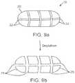 One or more ofballoons130,160 and172 can comprise various polymers known in the medical device arts. In preferred embodiments such polymers can comprise one or more types of polyethylene (PE) which may correspond to low density PE(LDPE), linear low density PE (LLDPE), medium density PE (MDPE) and high density PE (HDPE) and other forms of polyethylene known in the art. In one more embodiments using polyethylene, the material may be cross-linked using polymer irradiation methods known in the art so. In particular embodiments radiation-based cross-linking may be used as to control the inflated diameter and shape of the balloon by decreasing the compliance of the balloon material. The amount or radiation may be selected to achieve a particular amount of cross linking to in turn produce a particular amount of compliance for a given balloon, e.g., increased irradiation can be used to produce stiffer less compliant balloon material. Other suitable polymers can include PET (polyethylene teraphalate), silicone and polyurethane. In various embodiments balloons130,160 and172 may also include various radio-opaque materials known in the art such as barium sulfate to allow the physician to ascertain the position and physical state of the balloon (e.g., un-inflated, inflated or punctures.Balloons130,160 and172 can be fabricated using various balloon blowing methods known in the balloon catheters arts (e.g., mold blowing, free blowing, etc.) to have a shape and size which corresponds approximately to the interior volume124vofcapsule120. In various embodiments one or more ofballoons130,160 and172 and various connecting features (e.g., connecting tubes) can have a unitary construction being formed from a single mold. Embodiments employing such unitary construction provide the benefit of improved manufacturability and reliability since fewer joints must be made between one or more components ofdevice110.