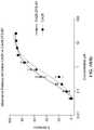 FIG. 7 is a plot that shows percent complement activation inhibiting activity of CA28 and long-acting compstatin analogs, as a function of compound concentration (μM). CA28-2CS (diamonds); CA28-2GS (crosses); CA28-2HS (triangles); CA28-2TS (squares).