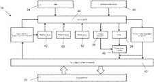 FIGS. 3-6 are block diagrams that illustrate embodiments of thetransmitter module circuit18 of the present invention that comprises various transmitter module sub-circuits. As illustrated in the embodiment shown inFIG. 3, thetransmitter module circuit18 comprises an electrical driver sub-circuit38, an electrical impedance matching ornetwork sub-circuit40 and areceiver sensing sub-circuit42. In addition, thetransmitter module circuit18, may comprise avoltage regulator36 and amaster control unit44. Alternatively, as shown, thevoltage regulator36 and themaster control unit44 may be comprised within thetransmitter host device22.