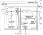 When the charging start notification JF is received, the charging-system control circuit63 switches the charging control signal from a low level signal to a high level signal. The chargingcircuit65 charges thebattery90 when the charging control signal is a high level signal. Also, when the charging start notification JF is received, the charging-system control circuit63 writes that information in theregister76. When the information that the charging start notification JF has been received is written in theregister76, the discharging-system control circuit73 switches the power supply control signal from a high level signal to a low level signal. Thepower supply circuit71 stops power supply to theprocessing device100 when the power supply control signal is a low level signal.