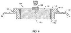Another embodiment is shown inFIG. 52, wherein one can see that thecrimp post404 passes through a larger diameter conductive fill via186. In addition, thetop crimp post404 comes very close to touching thebottom crimp post404′. In this case, the electrical conductivity from the body fluid side to the device side is greatly reduced. An optional configuration is shown inFIG. 27 wherein, the crimp post or tube is continuous from top to bottom thereby affecting the lowest resistivity possible.