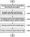 At step S430, based on the at least three kinds of the transmission signals, theultrasound transducer110 sequentially generates at least three kinds of ultrasound signals and transmits the at least three kinds of ultrasound signals to the target object. For example, referring toFIGS. 1 to 3, theultrasound transducer110 generates a first ultrasound signal in response to the received first transmission signal and transmits the first ultrasound signal to the target object. Additionally, theultrasound transducer110 generates a second ultrasound signal in response to the received second transmission signal and transmits the second ultrasound signal to the target object. Further, theultrasound transducer110 generates a third ultrasound signal in response to the received third transmission signal and transmits the third ultrasound signal to the target object.