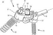 Receiver48 defines a longitudinal axis L3. Axis L3 is disposed transverse relative to axis L2 and axis X1. In some embodiments, axis L3 may be disposed in various orientations, such as, for example, perpendicular, transverse and/or at angular orientations, such as acute or obtuse relative to axis L2 and/or axis X1.Spinal rod50 is configured for disposal between a capture configuration withinreceiver48, as shown inFIG. 7, and a removable configuration such thatspinal rod50 is rotatably removable fromreceiver48, as shown inFIGS. 8 and 9, as described herein. In some embodiments,spinal rod50 is selectively adjustable relative toconnector14, for example, during a revision case or the repositioning of one or more components ofspinal construct12 and/or a surgical procedure employingspinal construct12, as described herein. In some embodiments,spinal rod50 is configured for connection with a fastener, such as, for example, a multi-axial fastener (MAS)70, as described herein.