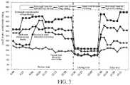 FIG. 3 shows variation of Cobb value of the paper before, during, and after a trial.