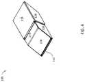 Thesecond portion104 of thecase100 is connected to thethird portion106 of the case at a second hingedconnection122. Thebase118 of the second portion is connected to abase124 of thethird portion106 via the second hingedconnection122. Thebase124 of thethird portion106 comprises a secondangled wall126 connected to a pair of opposingsidewalls128 extending perpendicularly from thebase124. In the depicted embodiment, when thesecond portion104 is rotated about the second hingedconnection122, the opposingsidewalls120 of thesecond portion104 overlap the opposingsidewalls128 of thethird portion106. Overlapping of the opposingsidewalls120,128 further aids in creating an inner volume of thecase100. In the depicted embodiment, the opposingsidewalls120 of thesecond portion104 are spaced farther apart than the opposingsidewalls128 of thethird portion106 and thebase118 of thesecond portion104 is slightly wider than thebase124 of thethird portion106 to accommodate overlapping.