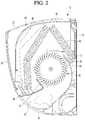 Therear guide71 extends from the rear side of thecase11 to the suction side of the blowingfan60. Therear guide71 guides the sucked air to the blowingfan60 smoothly when the blowingfan60 is rotated. Further, therear guide71 may prevent air flowing by the blowingfan60 from being peeled off from the blowingfan60.
