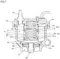 Thevalve support member5 is an example of the valve support member and is configured by a cylindrical metal member. As shown inFIGS. 6 and 7, in the embodiment, thevalve support member5 has thepartitioning part50 integrally provided at an axial lower part of the cylinder. When thehead valve4 is put in the cylindrical inner space, thefirst seal material41aof thefirst seal part41 and thesecond seal material42aof thesecond seal part42 of thehead valve4 are sliding contacted to thevalve support member5. Thevalve support member5 has different inner diameters at parts to which thefirst seal material41aof thefirst seal part41 and thesecond seal material42aof thesecond seal part42 of thehead valve4 are sliding contacted, in conformity to the respective seal parts.