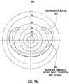 FIG. 5A illustrates a virtual tool activation chart comprising an exemplary activation threshold according to embodiments of the present disclosure.Chart500 represents a common range ofmotion502 of a pair of human eyes, not accounting for variations between individuals. In general,activation chart500 shows the angles from the center point that a person can directly aim the central focus of their eyes without moving the head. Note thatchart500 does not take into account peripheral vision. Ranges ofmotion502 for the human eye are greater than 95° horizontally and 75° vertically. Yet, most of the time, the eye operates in the central region ofrange502 rather than at the periphery ofrange502. Therefore, in embodiments, eye motion towards or directed at the periphery ofrange502 may be advantageously used to wake or activate a virtual tool. In certain examples, particular virtual tools are associated with certain points along theactivation threshold503, which allows a user to activate a desired virtual tool by looking beyond an associated point along theactivation threshold503.