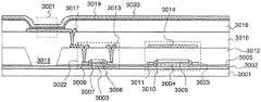 In addition, anopening portion3015 is formed in the firstinterlayer insulating film3012. A secondinterlayer insulating film3016 is formed so as to cover thedriving transistor3022, thecapacitor3023, and theopening portion3015. Then, a contact hole is formed in the secondinterlayer insulating film3016, through which apixel electrode3017 is formed. Then, aninsulator3018 is formed so as to cover end portions of thepixel electrode3017. For example, a positive photosensitive acrylic resin film can be used. Subsequently, alayer3019 containing an organic compound and anopposed electrode3020 are formed over thepixel electrode3017. Thus, alight emitting element3021 corresponds to a region where thelayer3019 containing an organic compound is interposed between thepixel electrode3017 and theopposed electrode3020. Theopening portion3015 is located below thelight emitting element3021. That is, in the case where light emitted from thelight emitting element3021 is extracted from the substrate side, the transmittance can be improved due to the existence of theopening portion3015.