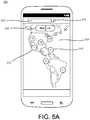 FIGS. 5A and 5B are schematic diagrams illustrating a graphical user interface (UI) enabling users to surface live broadcasts to replay or watch live, according to an implementation. In some implementations, theuser interface500 may be amap505 that providesindications510 of the location of video streams. Theindications510 may be placed proximate a location on the map that corresponds to the location of a video stream. Theindications510 may include a number representing the number of video streams with locations in the vicinity of the indication. Thus, theindication510 that includes thenumber103 may indicate that there are103 video streams in locations on the east coast of the United States. The video streams may be live but can also include stored video streams. In some implementations, theuser interface500 may include an indication with a different appearance, e.g., a different color or shape, for stored video streams.