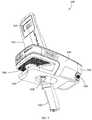 On an end of theshells2450,2452 opposite thewalls2446,2448 a pair ofyokes2454,2456 are arranged to partially cover therespective shells2450,2452. In the exemplary embodiment, theyokes2454,2456 are made from a suitably durable material, such as aluminum for example, that assists in protecting theshells2450,2452 during transport and operation. Theyokes2454,2456 each includes afirst arm portion2458 that is coupled, such as with a fastener for example, to thetraverse2444 adjacent thebase2424. Thearm portion2458 for eachyoke2454,2456 extends from thetraverse2444 obliquely to an outer corner of therespective shell2450,2452. From the outer corner of the shell, theyokes2454,2456 extend along the side edge of the shell to an opposite outer corner of the shell. Eachyoke2454,2456 further includes a second arm portion that extends obliquely to thewalls2446,2448. It should be appreciated that theyokes2454,2456 may be coupled to thetraverse2442, thewalls2446,2448 and theshells2450,2454 at multiple locations.
