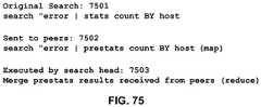 FIG. 75 illustrates an exemplary search query received from a client and executed by search peers in accordance with one or more implementations of the present disclosure.