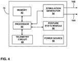 FIG. 4 is a functional block diagram illustrating various components of an implantable electrical stimulator.