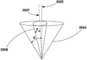 For example,IMD14 may identify a set of the recorded posture vectors that fall within a defined posture state. If the identified set of the recorded posture vectors predominantly fall within a portion of the defined posture state, as automatically determined byIMD14,IMD14 may shrink the posture state definition such that its boundaries more closely match the portion where the posture vectors predominantly fall, e.g., automatically or upon confirmation for a user. As illustrated in the example ofFIG. 21,posture state cone390A may initially be defined bycenter line392E, as referred to as posturestate reference vector392E, and cone angle E. However, based on recorded posture vectors over a period of time,IMD14 may redefine the posture state definition to generate a modifiedposture state cone390B defined bycenter line392F, also referred to as posturestate reference vector392F, and cone angle F.