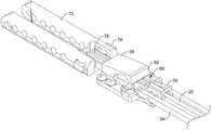 As seen inFIG. 2, and discussed in more detail below, eachactuator member50 and associatedrelease pin20 extends through aguide38 adjacent to and covering afinger34 of thecoupler32, through acollar36 coupling and/or locking thefinger34 to abuckle member58, through thebuckle member58, and connected to apost member76.