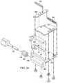 FIGS. 38A and 38B depict an upper perspective cutaway view of the breakaway bracket hinge assembly closing over a keyboard with an expanded configuration spacing between housing portions; and
