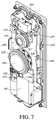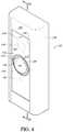 With further reference toFIG. 6, theshell184 includes acentral opening204 in a front surface. Thecentral opening204 is sized and shaped to accommodate theshield192. In the illustrated embodiment, theshield192 is substantially rectangular, and includes acentral opening206 through which thefront button148 protrudes. Theshield192 defines a plane parallel to and in front of afront surface208 of theenclosure180. When theshell184 is mated with theenclosure180, as shown inFIGS. 4 and 10, theshield192 resides within thecentral opening204 of theshell184 such that afront surface210 of theshield192 is substantially flush with afront surface212 of theshell184 and there is little or no gap (FIG. 4) between the outer edges of theshield192 and the inner edges of thecentral opening204 in theshell184.