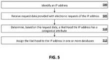 FIG. 5 is a flow chart of an example method of determining a likelihood value for an IP address category.