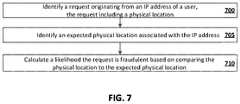 In some implementations, a method is provided and includes: identifying a request originating from an IP address of a user, the request including a physical location; identifying, from one or more databases, an expected physical location associated with the IP address, the expected physical location associated with the IP address in the one or more databases based on request data of one or more previous identifications of requests associated with the IP address; and calculating a likelihood that the request is fraudulent based on comparing the physical location to the expected physical location.