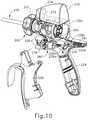 FIG. 10 depicts a perspective view of the handle assembly ofFIG. 6 with the housing shroud ofFIG. 7 removed and with a trigger of the handle assembly detached from the handle assembly;