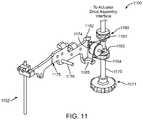 Typically,knob1171 is used to position the grip actuator element for engaging and disengaging the actuator rod assembly in the disposable tip assembly. When the disposable tip assembly is mounted on and locked to the reusable instrument portion, an actuator drive assembly is used to control the movement of sheathedtendon1152 in response to input from a user at a master control station.